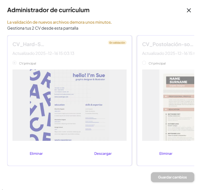 Puedes editar cualquier apartado las veces que necesites. Cada cambio, también deberá ser validado antes de que sea visible para los reclutadores.