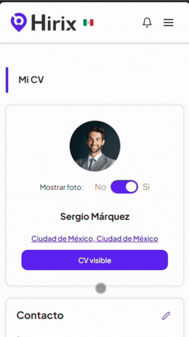 Una vez que inicies sesión y verifiques tu identidad, podrás disfrutar de Hirix. A continuación, da clic en "Mi CV", ubicado en la parte superior izquierda.