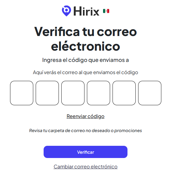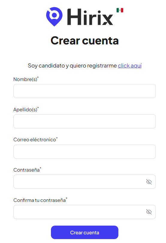 1. Ve a la página de inicio de Hirix https://mx.hirix.com y da clic en el botón Registrarme