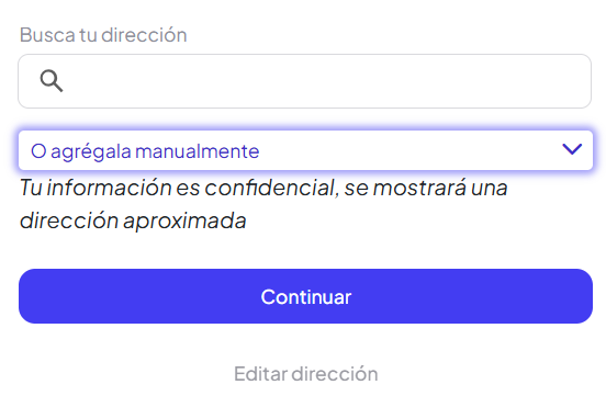 5. ¡Ayúdanos a encontrarte! Necesitamos saber tu dirección, así podremos mostrarte contenido y ofertas que realmente te interesen. Escribe tu dirección en el cuadro o bien, agrégala manualmente y da clic en "Continuar".
